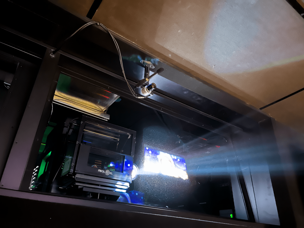 Fixed mounted device for theatre automated measurements (light & audio) and adjustment (focus) ensuring the best projection quality.